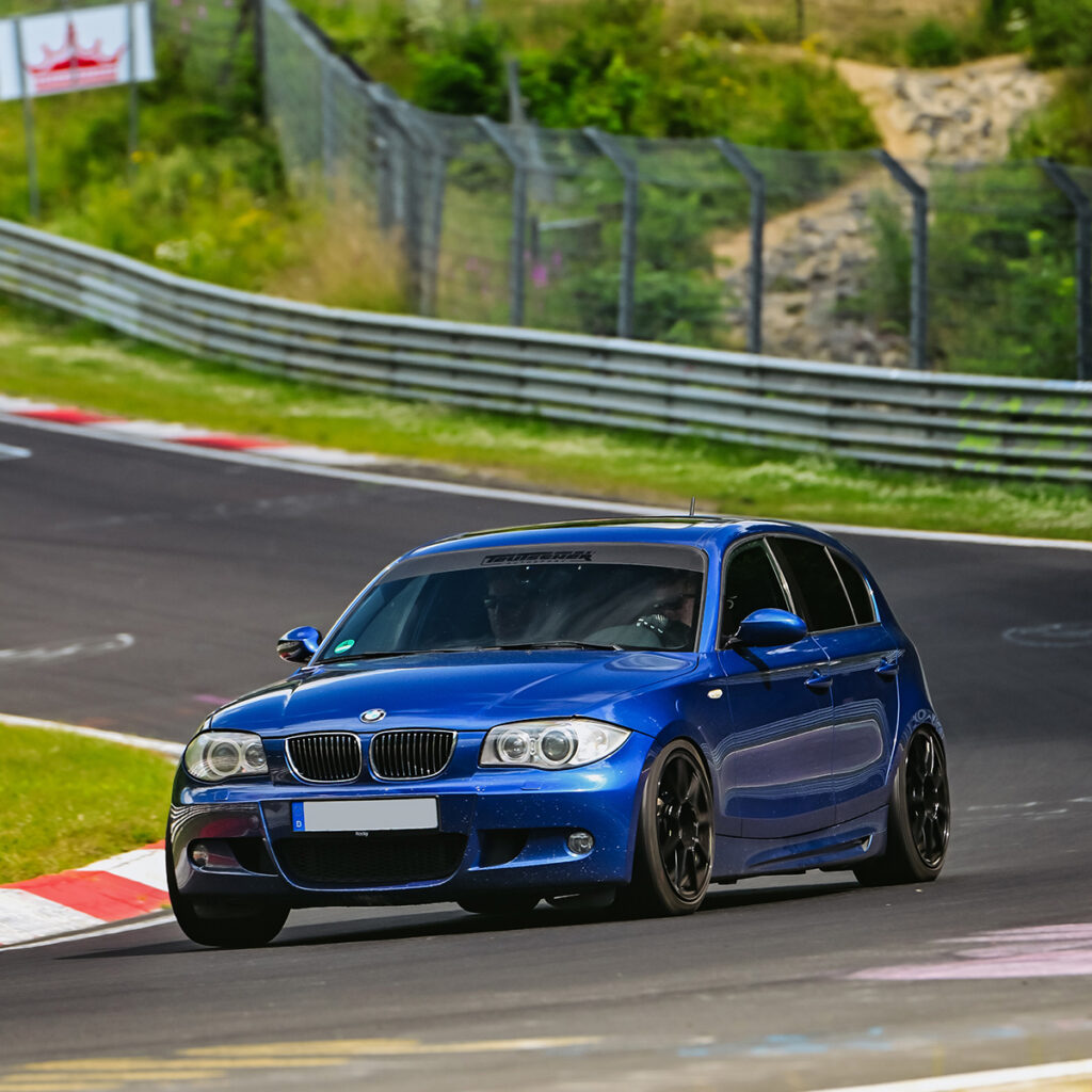 With its hydraulic steering, stripped weight, and race-proven modifications, the 130i offers one of the most connected driving experiences in our fleet. From its ST XTA suspension to its M4 brakes and uniball-enhanced chassis, this car is built to shine on the Nürburgring – especially in the hands of purists who value mechanical feel over computers.