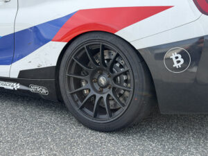 Stopping power comes from AP Racing 5000R brakes – 6-piston calipers up front and 4-piston at the rear – paired with PFC endurance brake pads, braided steel lines, and advanced cooling for fade-free performance during the longest stints. Grip is delivered via Protrack One wheels wrapped in Nankang CR-S semi-slick tires (265 front / 295 rear), ensuring traction and stability when pushing the limits.