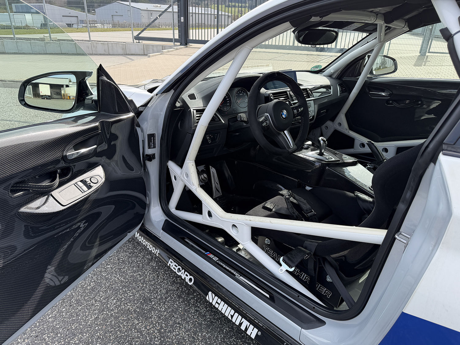 The BMW M2 CS Racing in our fleet is as close as you can get to a GT4 race car while still being road-legal. Developed with inspiration from BMW M Cup-cars and engineered to perfection by Team Schirmer, this machine is the ultimate evolution of the M2 platform. Every component has been hand-picked for maximum performance on the Nürburgring Nordschleife, transforming this car from an already impressive base into a no-compromise ringtool.