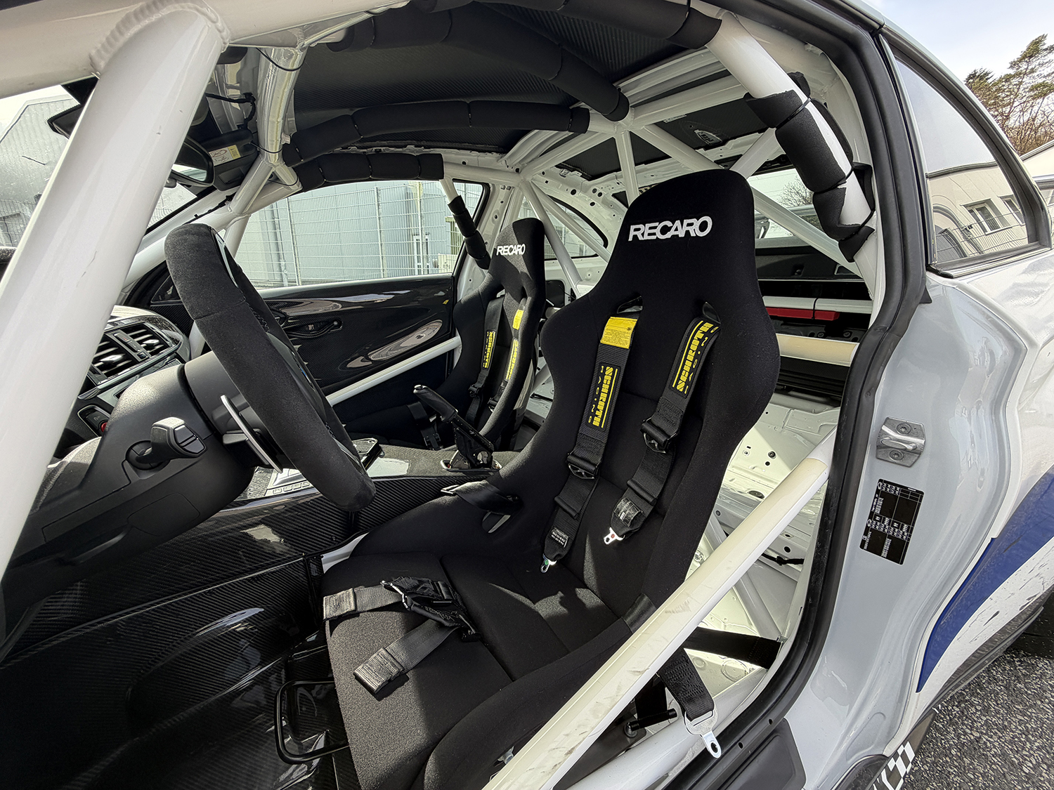 Inside, the cockpit is pure motorsport: RECARO Pole Position bucket seats, Schroth 6-point harnesses, and BMW Motorsport carbon panels create an environment designed for focus, control, and ultimate safety.