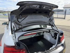 At its core, the M2 CS Racing is powered by a Stage 2-tuned 3.0L twin-turbo engine producing 480 hp and 600 Nm, paired with a 7-speed DCT for lightning-fast gear changes. Combined with a welded FIA-homologated roll cage, an interior stripped and finished in white, and carbon fiber everywhere – from roof and hood to fenders, tailgate, and aero components – this car is lightweight, rigid, and brutally effective. It’s a full-on track experience wrapped in a BMW shell.